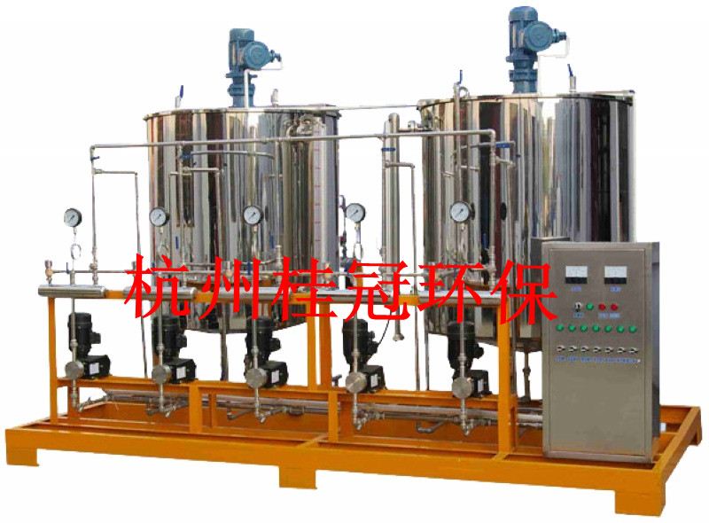 循環水系統的化學處理方法是向系統內投加防腐,阻垢,殺生等藥劑。根據這一情況,我公司生產SG-JY型加藥裝置,并挑選EDS緩蝕殺生劑和DH-7701緩蝕阻劑。對中央空調系統及其它循環冷卻水系統進行化學處理,以達到用水設備高安全運行。